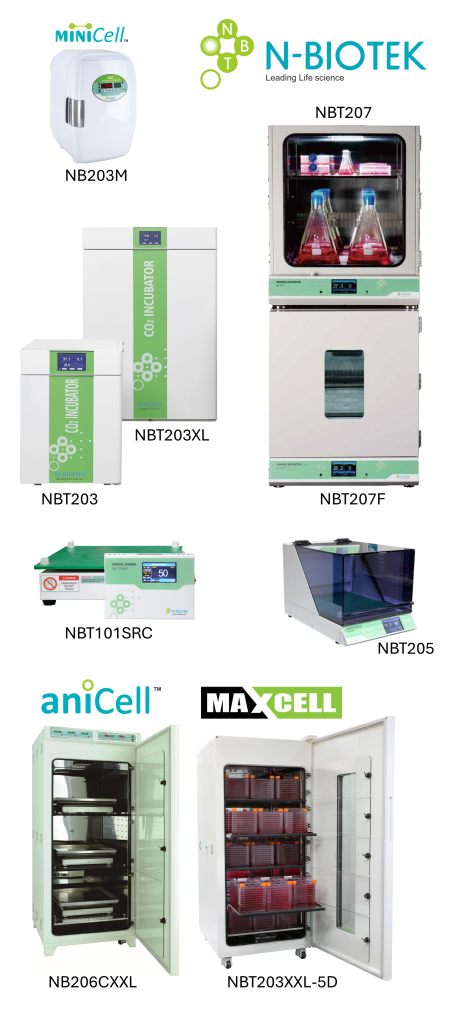 Seit 25 Jahren produziert N-Biotek hochwertige Inkubatoren mit und ohne CO2‑Kontrolle für die Kultivierung von Zellen und Mikroorgansimen. Das Portfolio umfasst zahlreiche Inkubatoren in verschiedenen Größen (15, 42, 180, 280 und 880 Liter), welche mit vielen praktischen Zusatzoptionen wie Kühlfunktion, UV- oder Hitze-Sterilisation, Sauerstoffkontrolle, aufgeteilte Innentür, Zugangsport oder Kupferauskleidung ausgestattet werden können. Insbesondere das Großraummodel MaxCell™ mit 5‑fach geteilter Innentür bietet durch die 4 Ventilatoren und der 6‑seitigen Beheizung eine uniforme Temperaturumgebung und ist damit eine hervorragende Plattform für großtechnische Zellkulturanwendungen zum attraktiven Preis.