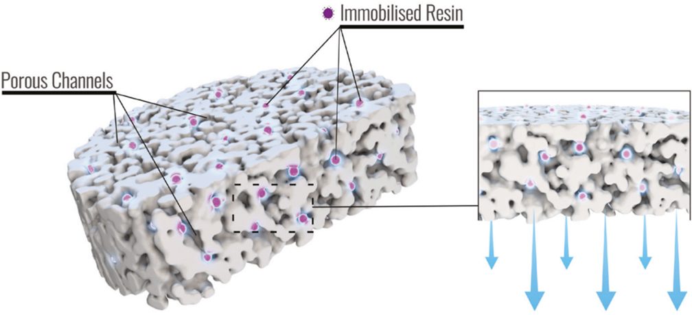 Die neue Microlute® Hybridtechnologie besteht aus einem festen, verzweigten Netzwerk aus gleichmäßig verteilten Poren, welche mit immobilisiertem Chromatographiemedium beladen sind. Microlute® CP nutzt dabei Polymere und Microlute® CSi Silica.