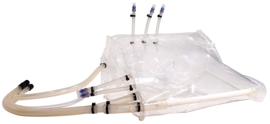 • Sterile, multi-layered bioreactor bags made of high-quality polymers with culture volume of 4, 8 or 50 liters including a sparger for aeration and gentle mixing of the culture medium