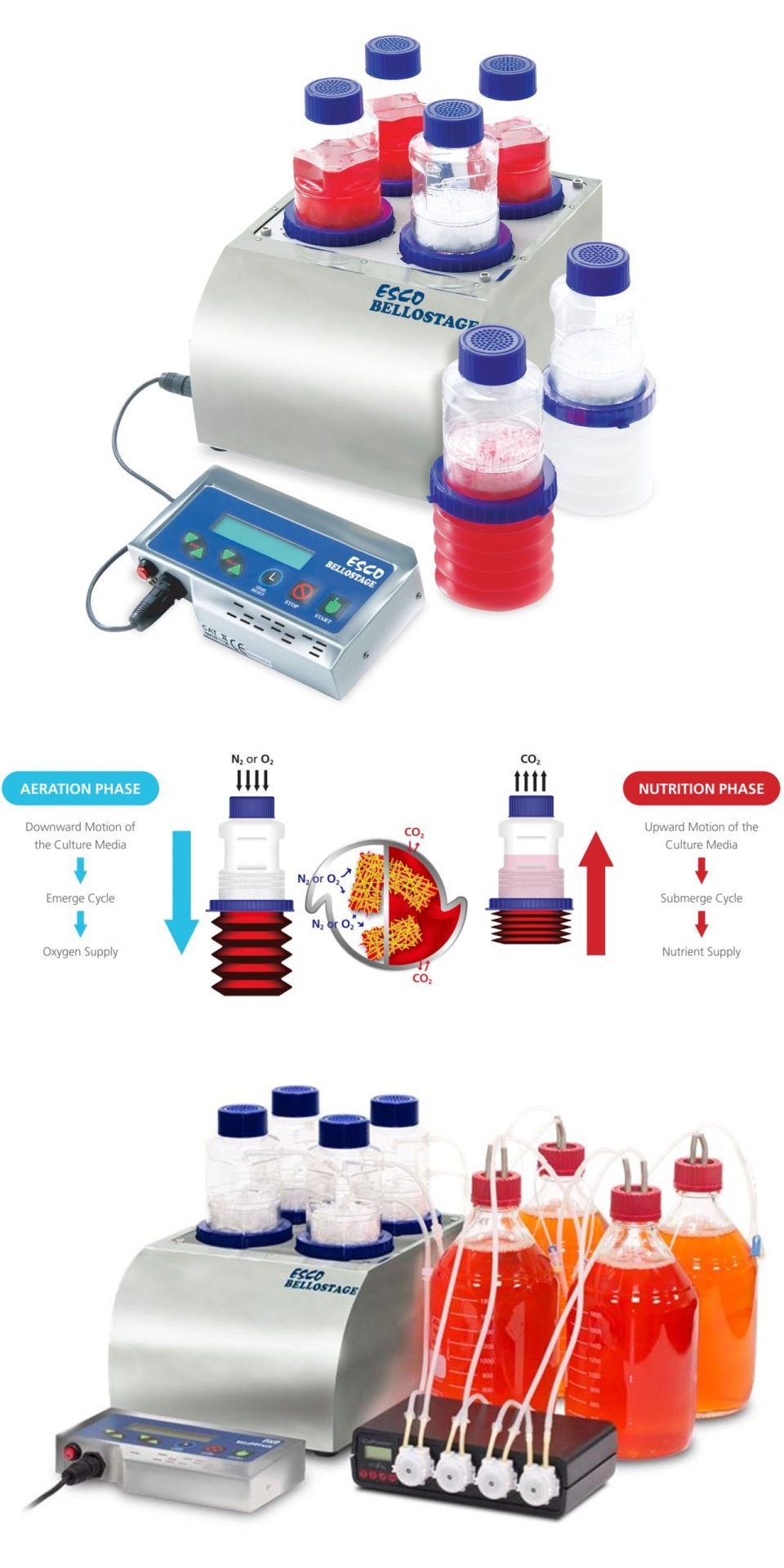 • Consists of the BelloStage®-3000 compressor, sterile single-use BelloCell® bottles, BioNoc II® or BioMESH®macrocarriers, and optionally the BelloFeeder®-1500 pump