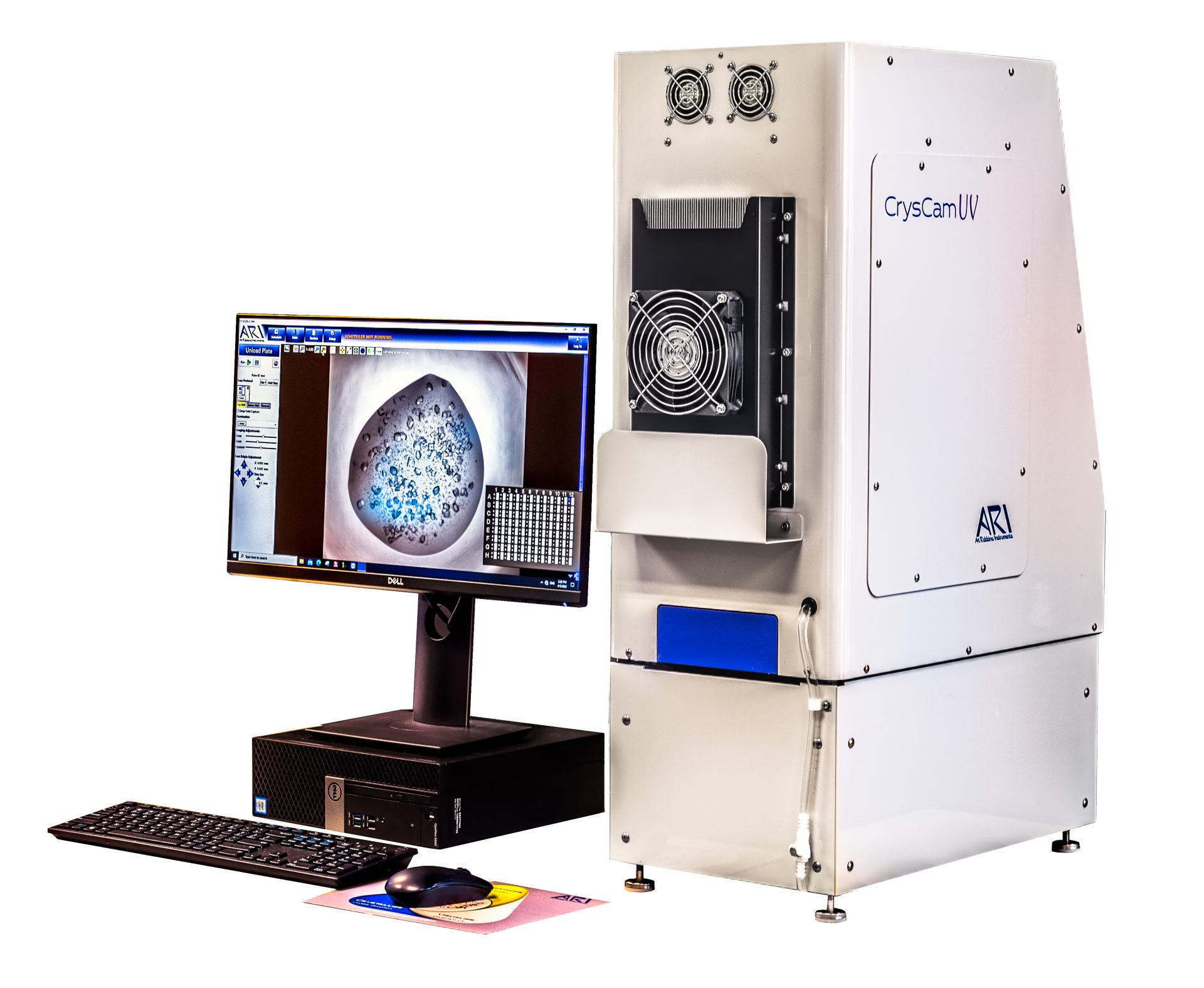 Mit dem CrysCam™ Digitalmikroskop können Sie die Bilder einer gesamten Platte mit einem Mausklick aufnehmen. Die Bühne und die benutzerfreundliche Software erfassen automatisch das Bild jedes Wells und wechseln dann zum nächsten. Das Gerät hat einen geringen Platzbedarf und kann auch in einem Kühlraum aufgestellt werden. Die CrysCam™ ermöglicht es, Kristalle während der Kristallisation zu sehen, anstatt durch ein Mikroskop zu schauen. Der hochauflösende und präzise X-Y-Tisch lässt sich problemlos an der CrysCam™ – Basis befestigen.